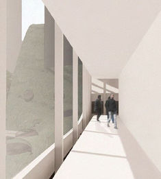 et le mouvement des visiteurs sont visible et exposés en tout point de l’espace. Le musée s’anime au rythme des déplacements des visiteurs. Dans le but de répondre à la Place des festivals faisant face au site, un socle vient s’abaisser pour venir chercher les visiteurs. Ce socle vient être transpercé par des volumes comprenant les salles d’expositions. Ces monolithes se prolongent jusqu’à l’intérieur et viennent chercher les visiteurs dès l’entrée. Les circulations gravitent en périphérie des volumes dans un espace interstitiel entre les salles d’expositions et la façade. Le mouvement des visiteurs est capté par des parois translucides et donne vie aux façades. En soirée, le musée s’illumine pour révéler la profondeur de sa structure et la nature des activités qui s’y déroulent. Les parois translucides reçoivent des projections pour poursuivre l’exposition en dehors des heures d’ouvertures du musée.